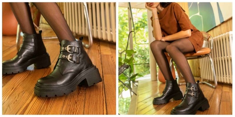 Base combinada al tono, cierre lateral para facilitar el calce, cuero suave y blando que acompaña la forma natural del pie.