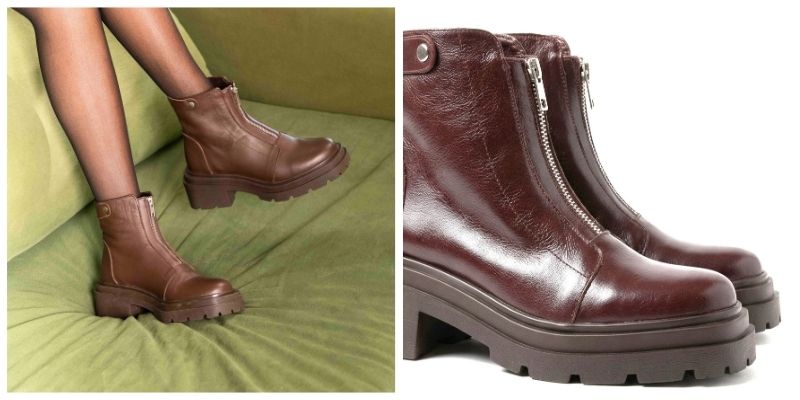 Base combinada al tono, cierre frontal para facilitar el calce y cuero blando que acompaña la forma natural del pie.